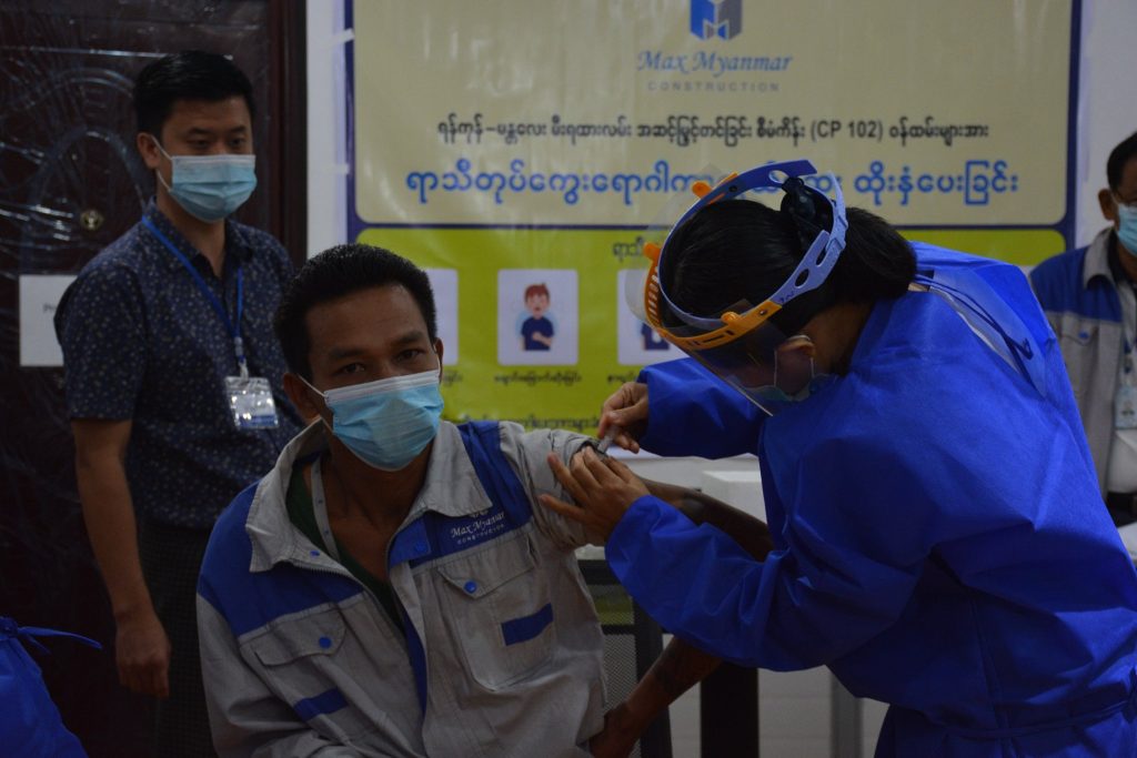 ရန်ကုန်-မန္တလေး မီးရထားလမ်း အဆင့်မြှင့်တင်ခြင်း စီမံကိန်းမှ ဝန်ထမ်းများအား ဒုတိယအသုတ် တုပ်ကွေးကာကွယ်ဆေး ထိုးနှံပေး